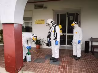 Imagen de técnicos de la Diputación de Sevilla en tareas de desinfección de residencias de municipios de la provincia. - DIPUTACIÓN DE SEVILLA - Archivo
