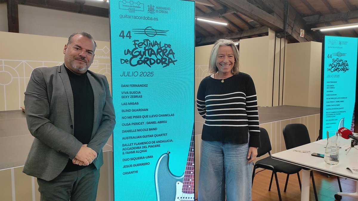 La guitarrista Orianthi, Australian Guitar Quartet, Jesús Guerrero y Dúo Siqueira-Lima se suman al 44º Festival de la Guitarra de Córrdoba, que se celebrará del 1 al 11 de julio de 2025, y en el que también serán protagonistas Viva Suecia, Sexy Zebras, Las Migas, 'La materia' de Olga Pericet, Danielle Nicole Band, Dani Fernández, No me pises que llevo chanclas, Blind Guardian y el espectáculo 'Origen' con Fahmi Alqhai al frente de Accademia del Piacere y Patricia Guerreo dirigiendo el Ballet Flamenco de Andalucía.