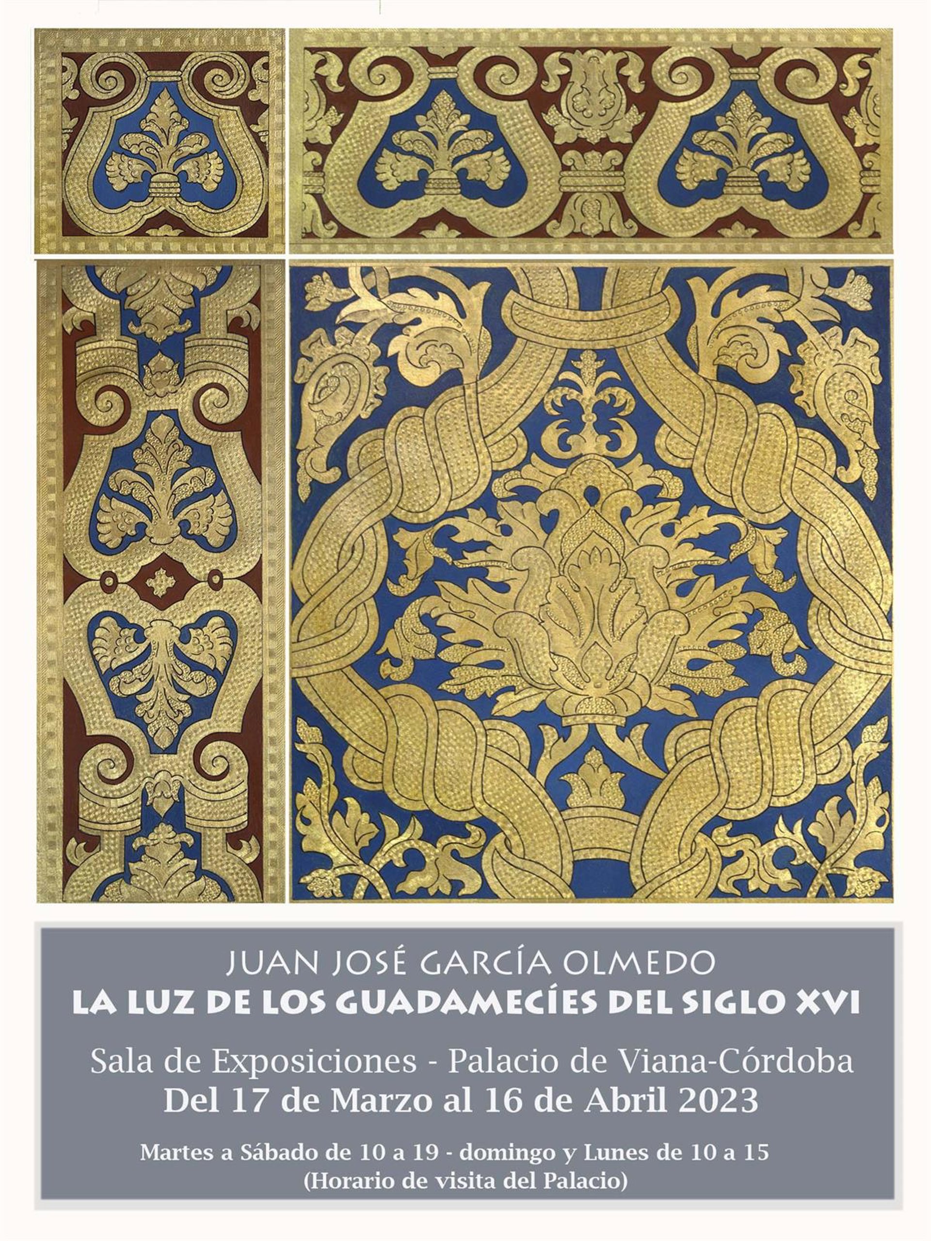 La sala Polivalente del Palacio de Viana de Córdoba acoge desde este viernes al 16 de abril la exposición 'La luz de los guadamecíes del siglo XVI', a cargo del artista Juan José García Olmedo, graduado en Artes Aplicadas --especialidad Cuero Artístico-- por la Escuela de Artes y Oficios de Córdoba.