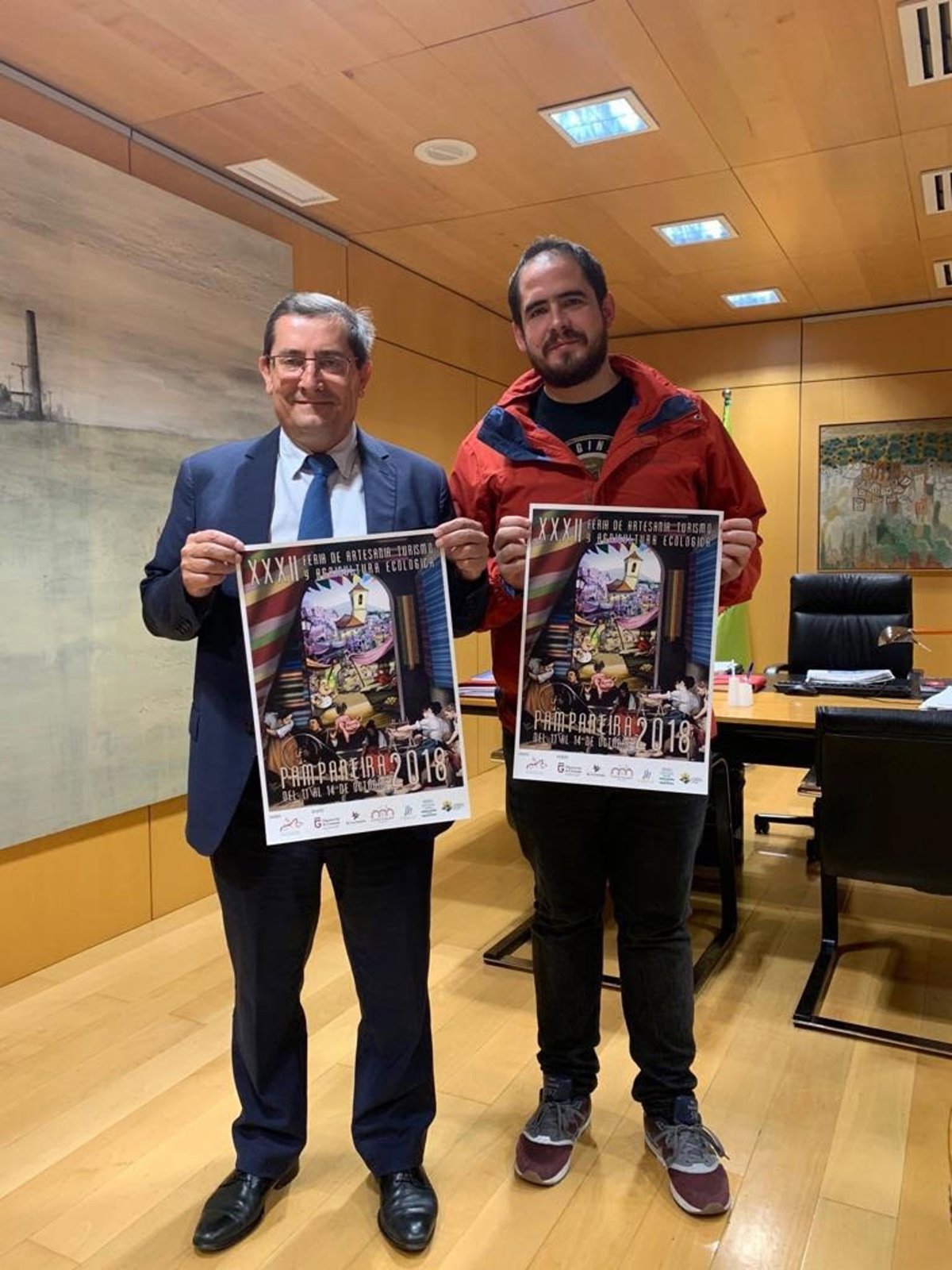 El presidente de la Diputación de Granada, José Entrena, junto al alcalde del municipio alpujarreño de Pampaneira, Ángel Pérez, han presentado este miércoles la XXXII edición de esta Feria de Artesanía.