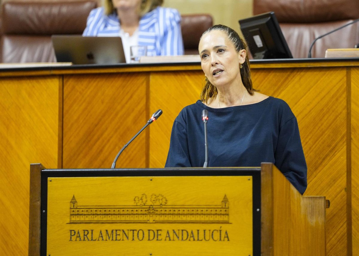 La diputada del PP-A Maribel Lozano interviene en el Pleno del Parlamento andaluz. - JOAQUÍN CORCHERO/PARLAMENTO DE ANDALUCÍA