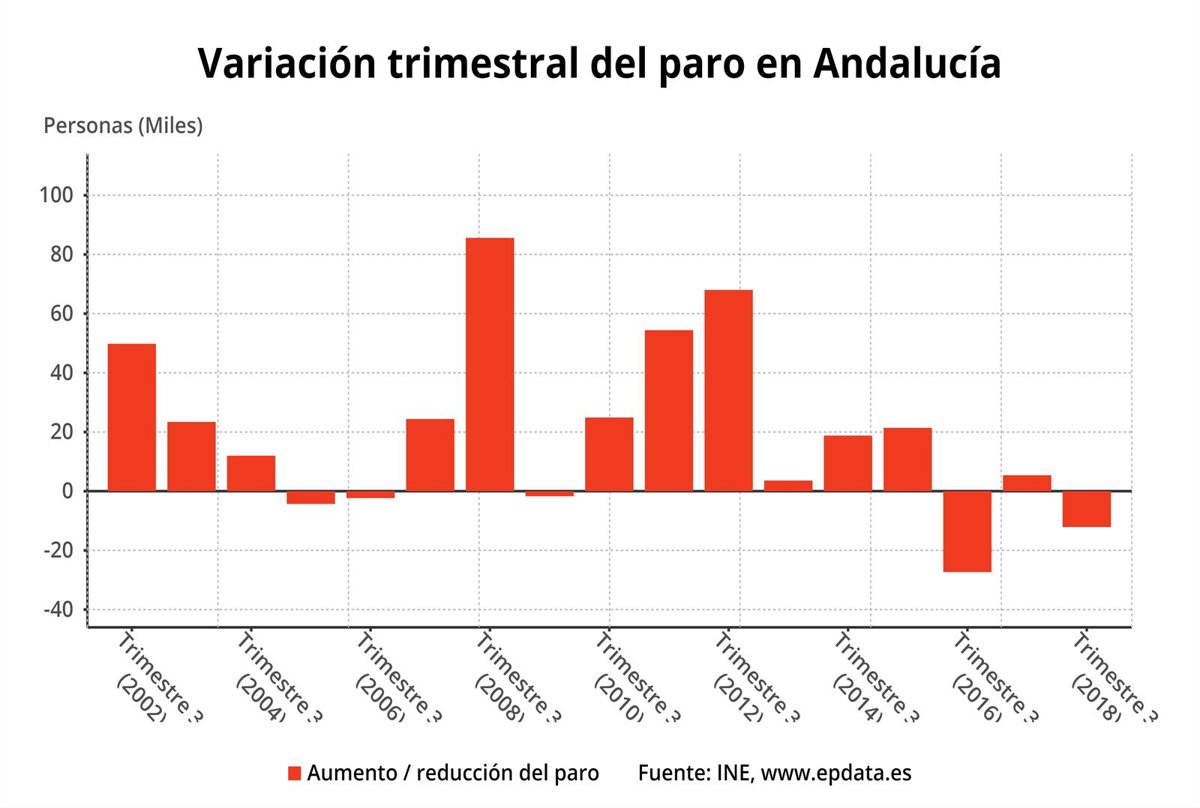 En números absolutos, en la Comunidad han sido Sevilla, Málaga y Cádiz, las que ocuparon las tres primeras posiciones, con 207.500, 140.100 y 138.700 parados, respectivamente.