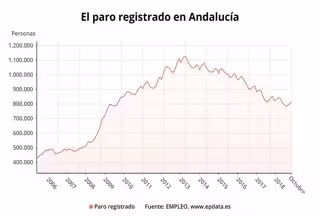 Por sexos, de los 814.452 desempleados registrados el pasado mes en Andalucía, la mayor parte fueron mujeres, con 480.182 desempleadas, mientras que 335.270 eran hombres.