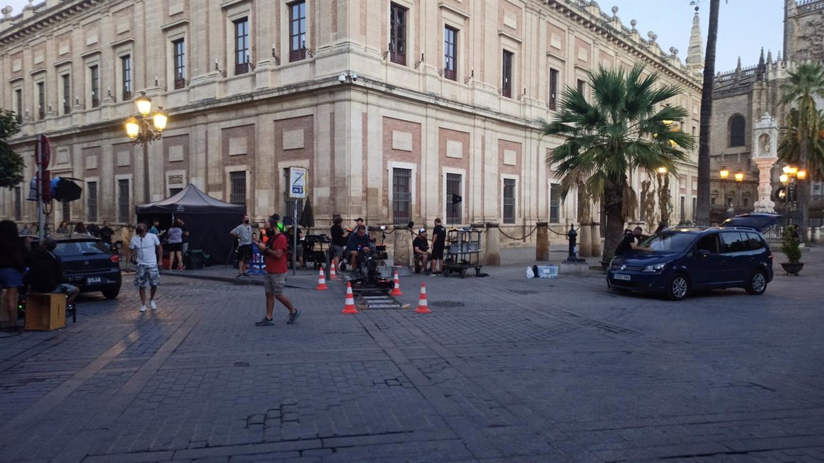 Archivo - Rodaje televisivo junto al Archivo de Indias para una serie de Netflix EEUU, foto de archivo - AYTO. - Archivo