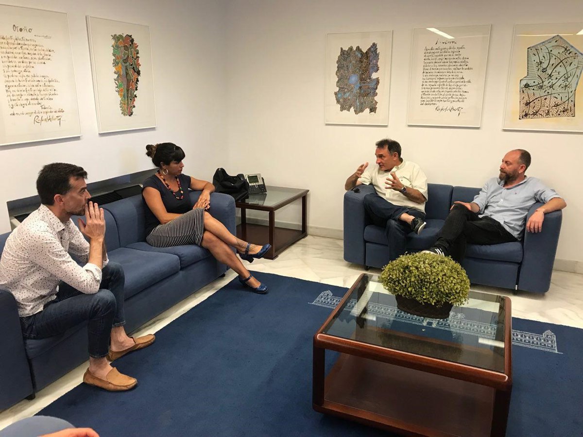 El secretario general del Partido Comunista de España (PCE), Enrique Santiago, ha mantenido este miércoles en el Parlamento andaluz un encuentro con los principales líderes de las organizaciones políticas impulsoras de 'Adelante Andalucía' --la coordinadora de Podemos Andalucía, Teresa Rodríguez, y el coordinador general de IULV-CA, Antonio Maíllo--, y ha valorado dicho proceso de confluencia de cara a las próximas elecciones autonómicas como "un modelo que merece la pena ser seguido, observado y atendido", así como ha puesto al PCE a la "entera disposición" del mismo.