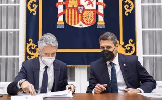 Archivo - El ministro del Interior, Fernando Grande-Marlaska (i), junto al delegado de Gobierno en Andalucía, Pedro Fernández (d), en una imagen de archivo. - María José López - Europa Press - Archivo