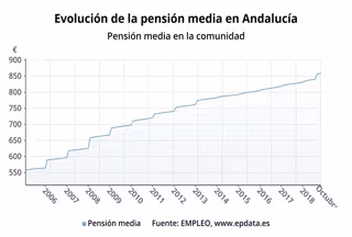 La cuantía de la pensión media en Andalucía se ha situado en octubre en 858,79 euros, un 3,5 por ciento más que en el mismo mes del año pasado, cifra absoluta que supone un 10,4 por ciento por debajo de la pensión media a nivel nacional, cifrada en 958,56 euros.
