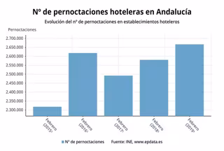 Los hoteles andaluces han registrado un total de 2.666.917 pernoctaciones durante el pasado mes de febrero, lo que supone un 3,3 por ciento más que en el mismo mes del año anterior, según los datos difundidos este viernes por el Instituto Nacional de Estadística (INE).