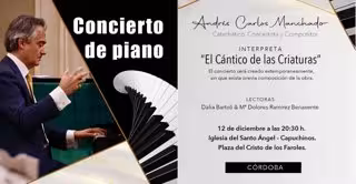 El pianista, compositor y catedrático de prestigio Andrés Carlos Manchado llevará a cabo el viernes 12 de diciembre una improvisación espiritual en la Iglesia del Santo Ángel-Capuchinos, en la emblemática Plaza del Cristo de los Faroles de Córdoba, al crear en directo 'El Cántico de las Criaturas' mientras Dalia Bartoli y María Dolores Ramírez Benavente darán voz a los versos originales en una lectura que dialogará con la música.