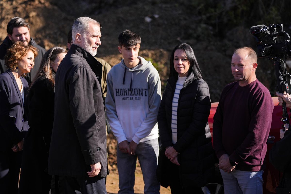 El joven de 16 años, Julio Rodríguez, relata a los Reyes, Felipe VI y Letizia, que fue uno de los primeros en llegar al lugar del accidente de trenes de Adamuz (Córdoba) - JOAQUÍN CORCHERO / EUROPA PRESS