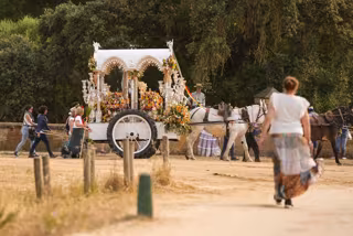 Imagen de archivo del paso de la Hermandad del Rocío de Cabra por el Vado del Quema. - Joaquin Corchero - Europa Press