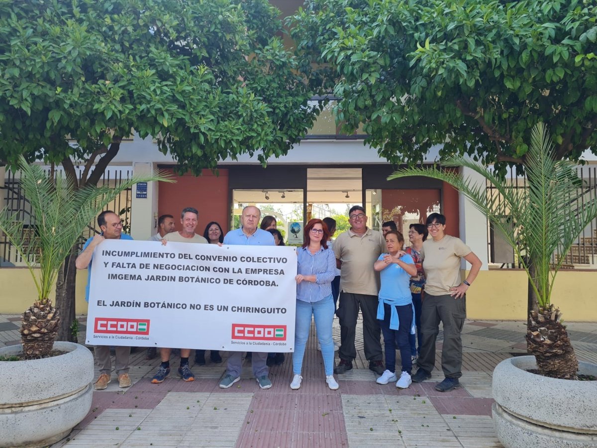 La plantilla del Instituto Municipal de Gestión Medioambiental Jardín Botánico (Imgema) ha vuelto a concentrarse este jueves a las puertas del Jardín Botánico de Córdoba para protestar acerca de "la mala situación laboral que padecen por los continuos incumplimientos del convenio colectivo y la escasa negociación colectiva con los representantes del comité de empresa".