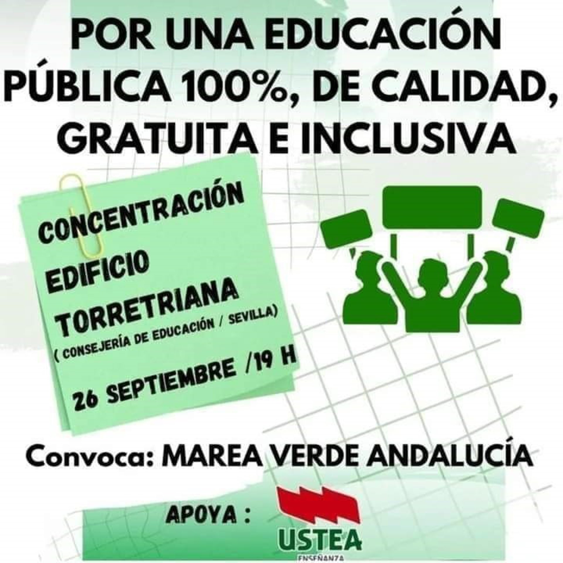 Cartel de la convocatoria por la educación pública de Marea Verde Andalucía. - USTEA