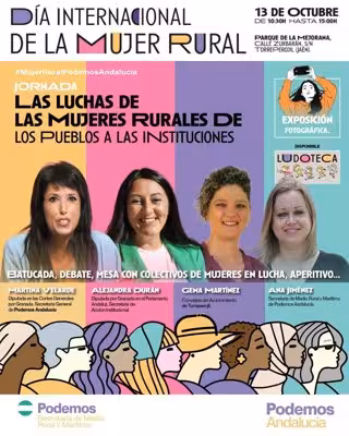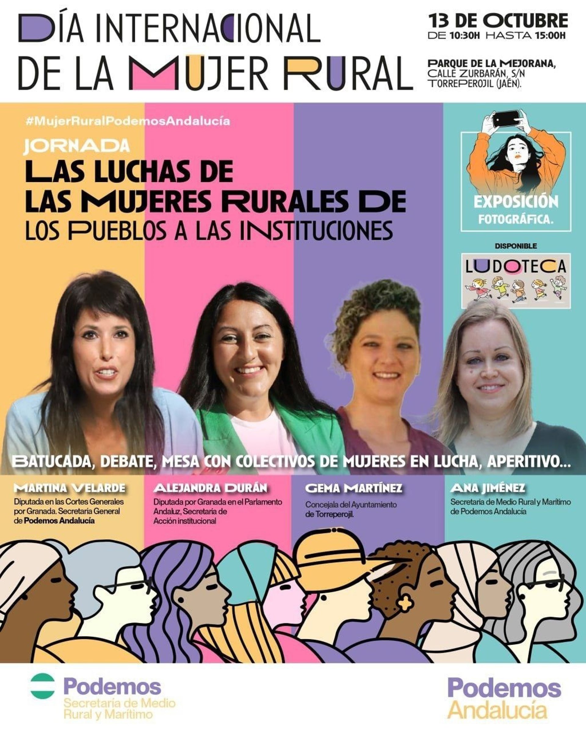Podemos Andalucía conmemorará este domingo, 13 de octubre, el Día Internacional de la Mujer Rural con la celebración de unas jornadas de convivencia que se desarrollarán en el municipio de Torreperogil, en la provincia de Jaén.