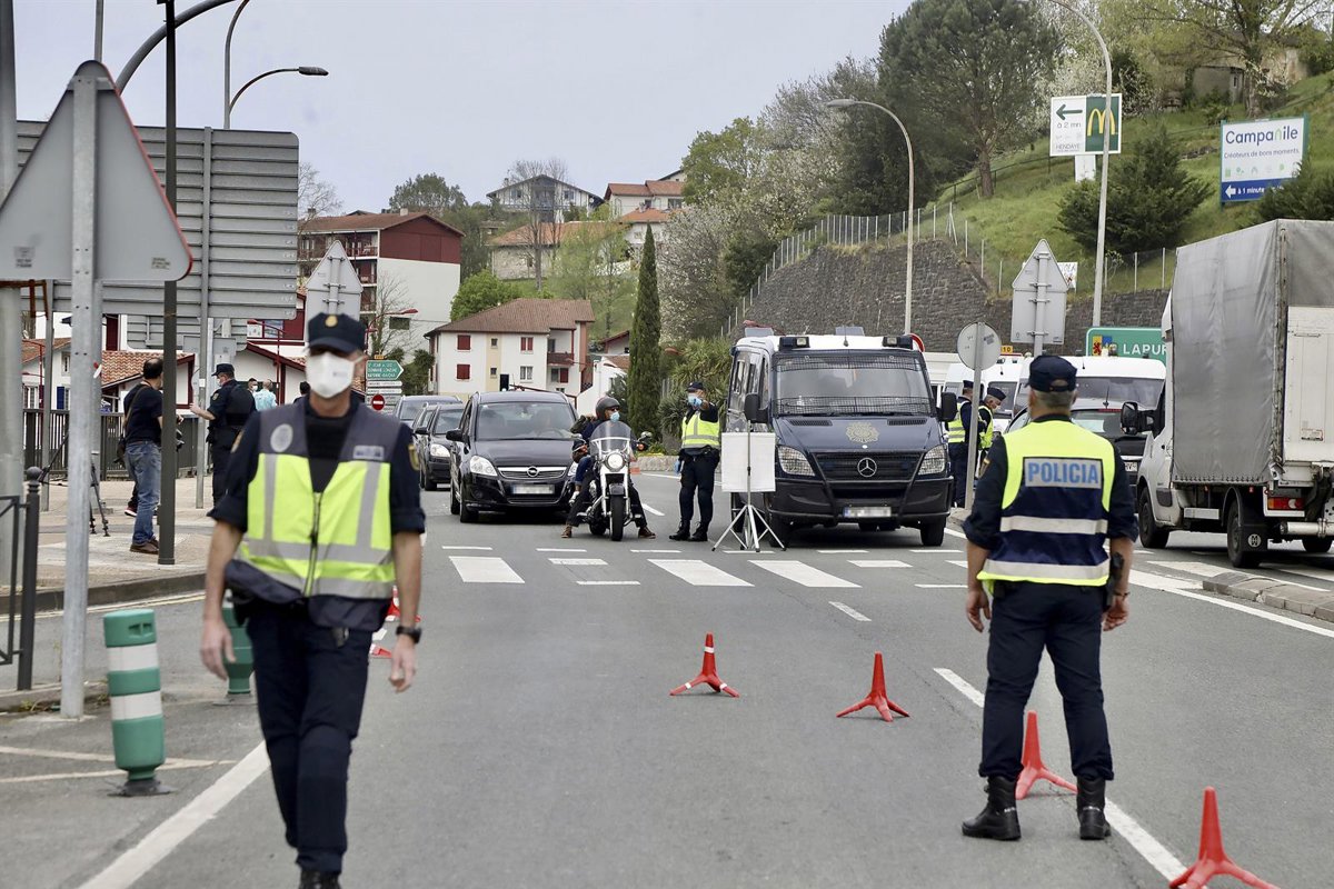Dos policías nacionales participan en un control en la frontera con Francia, en Irún - Javi Colmenero - Europa Press