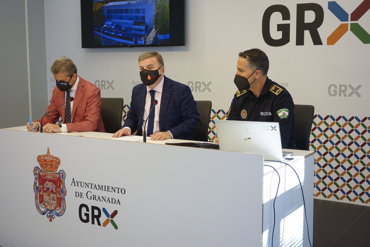 La nueva infraestructura ha sido presentada en el Ayuntamiento de Granada por los concejales de Movilidad y Protección Ciudadana, César Díaz, y de Organización y Servicios Generales, Francisco Fuentes.