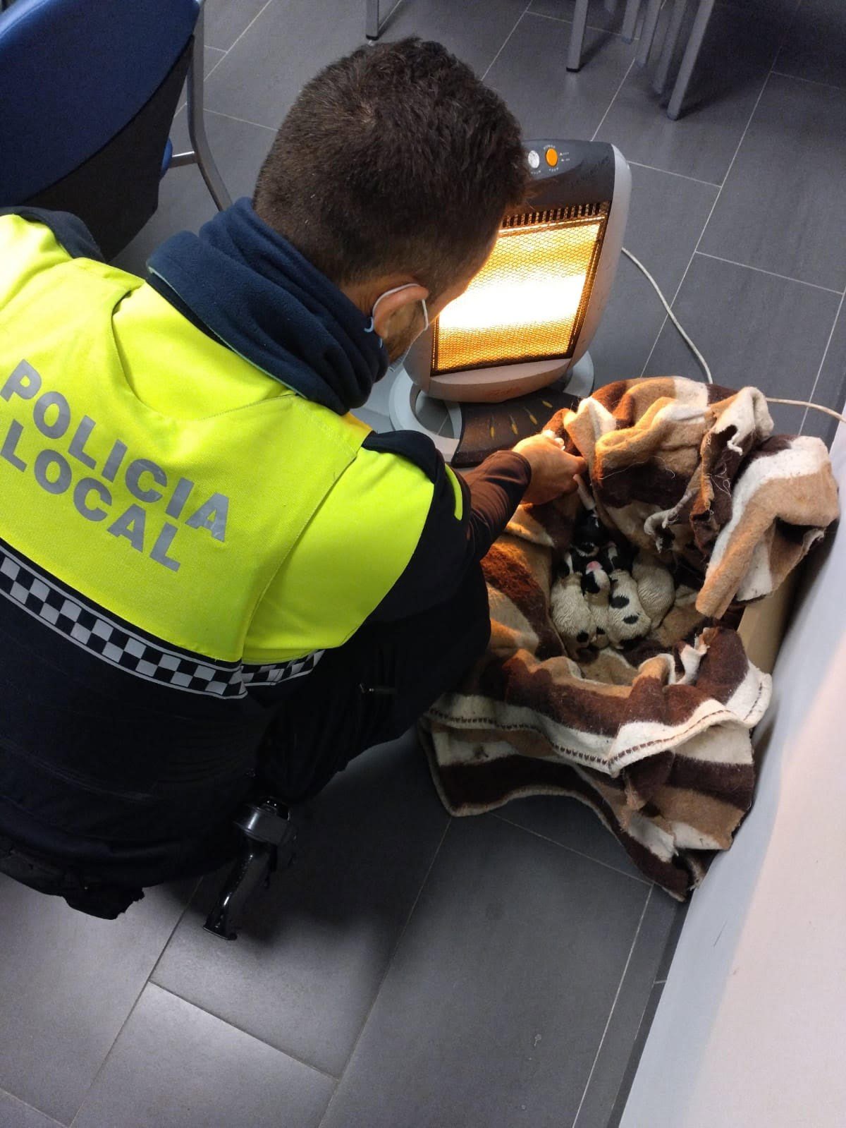 Al respecto, la Policía Local explica que los animales fueron introducidos en cajas de cartón y trasladados hasta las dependencias de Jefatura de Policía para recibir las atenciones necesarias para mantenerlos con vida, tales como calor o alimentos básicos, hasta que a la mañana siguiente fueron entregados con vida a la protectora de animales Dejan Huella.