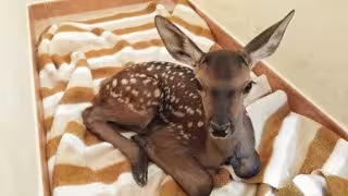 Dos agentes de la Policía Local de Úbeda (Jaén) han localizado a una cría de ciervo que se encontraba junto a unos contenedores y que estaba siendo acosada por unos perros.