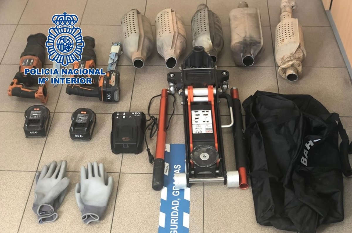 Junto a estos dispositivos, que forman parte del sistema de escape de un vehículo y cuya principal función es la de reducir la contaminación producida al expulsar los gases al exterior, los policías encontraron diferentes herramientas, como dos sierras de calar, con sus correspondientes baterías, 30 recambios de sierra y un gato hidráulico.