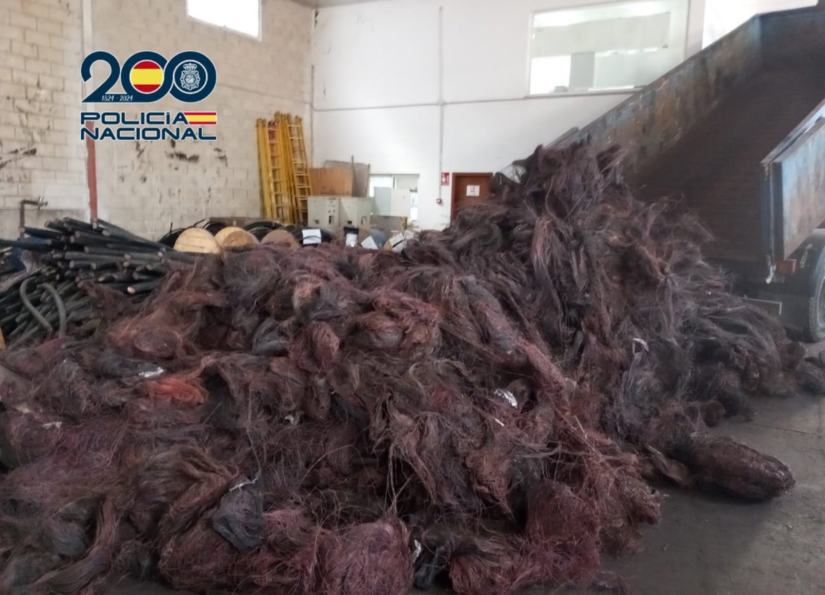 La Policía Nacional ha desarticulado un grupo criminal dedicado al robo de cobre y ha detenido a cuatro personas a las que se les imputa un delito de receptación de cobre y pertenencia a grupo criminal, en la que se considera una de las mayores cantidades de cobre recuperadas pertenecientes a una empresa de telefonía, en concreto más de 18 toneladas, procedentes del robo de cableado telefónico.