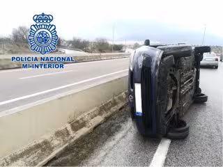 Un agente de la Policía Nacional en Jaén fuera de servicio auxilió y extrajo de un vehículo a tres personas después de sufrir este miércoles "un aparatoso accidente" en la Autovía del Olivar.