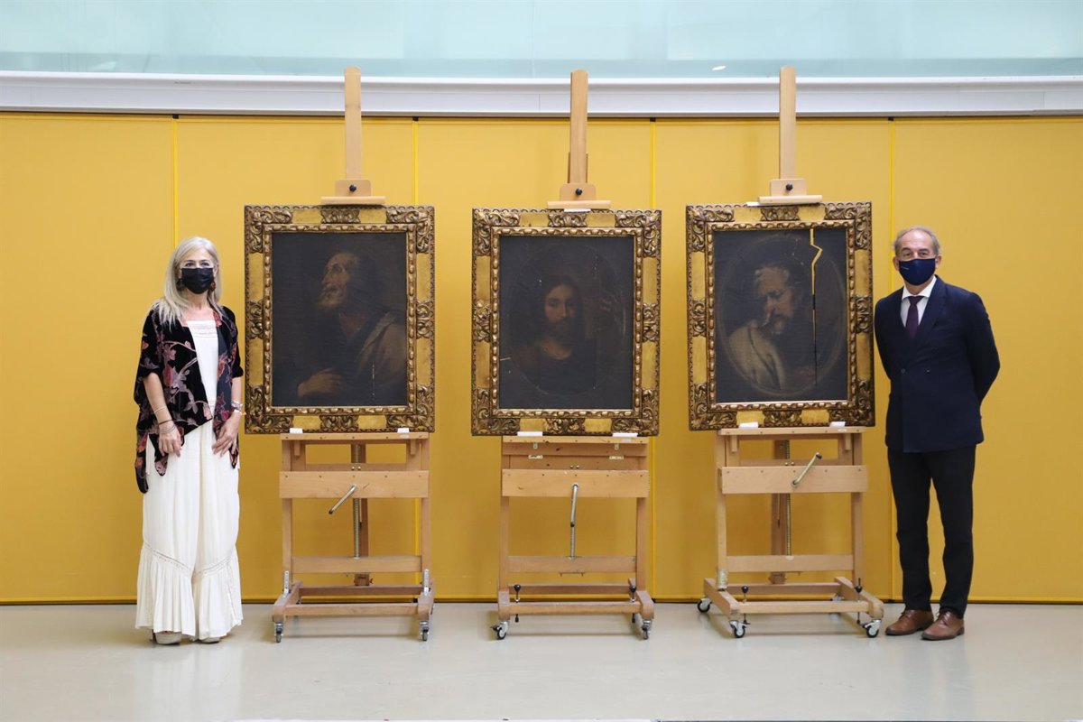 La consejera de Cultura, Patricia del Pozo, en la presentación de tres pinturas sobre tablas del siglo XVII junto al rector de la Universidad Loyola, Gabriel Pérez Alcalá - JUNTA DE ANDALUCÍA