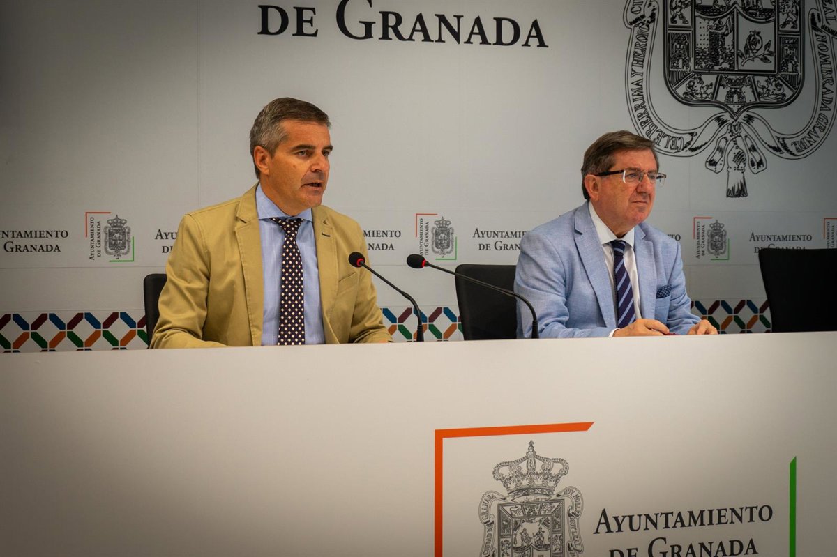 El coordinador y el portavoz del grupo municipal del PP, Luis González y César Díaz, en rueda de prensa. - AYUNTAMIENTO DE GRANADA