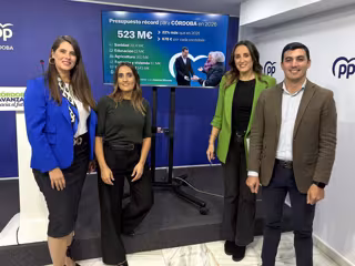 Los diputados autonómicos del PP por Córdoba Araceli Cabello, Beatriz Jurado, José Carlos García y Verónica Martos han calificado el proyecto de Presupuestos andaluces 2026 para la provincia como "el mejor Presupuesto autonómico de 2026, diseñado para seguir avanzando, transformándose y consolidándose como ejemplo de bienestar para los cordobeses".
