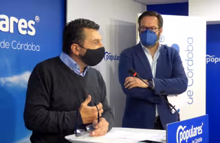 El vicesecretario general del PP de Andalucía, Toni Martín, junto al presidente del PP cordobés Adolfo Molina, ha defendido este lunes el modelo fiscal del Gobierno andaluz que preside el popular Juanma Moreno, "que baja impuestos, frente al modelo de Pedro Sánchez que los sube", y que incluso "quiere cobrarnos por usar las autovías" gratuitas.