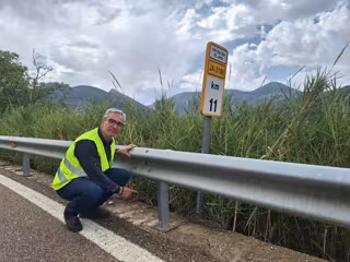 Luis Mariano Camacho junto a un guardarraíl de una carretera provincial - PP