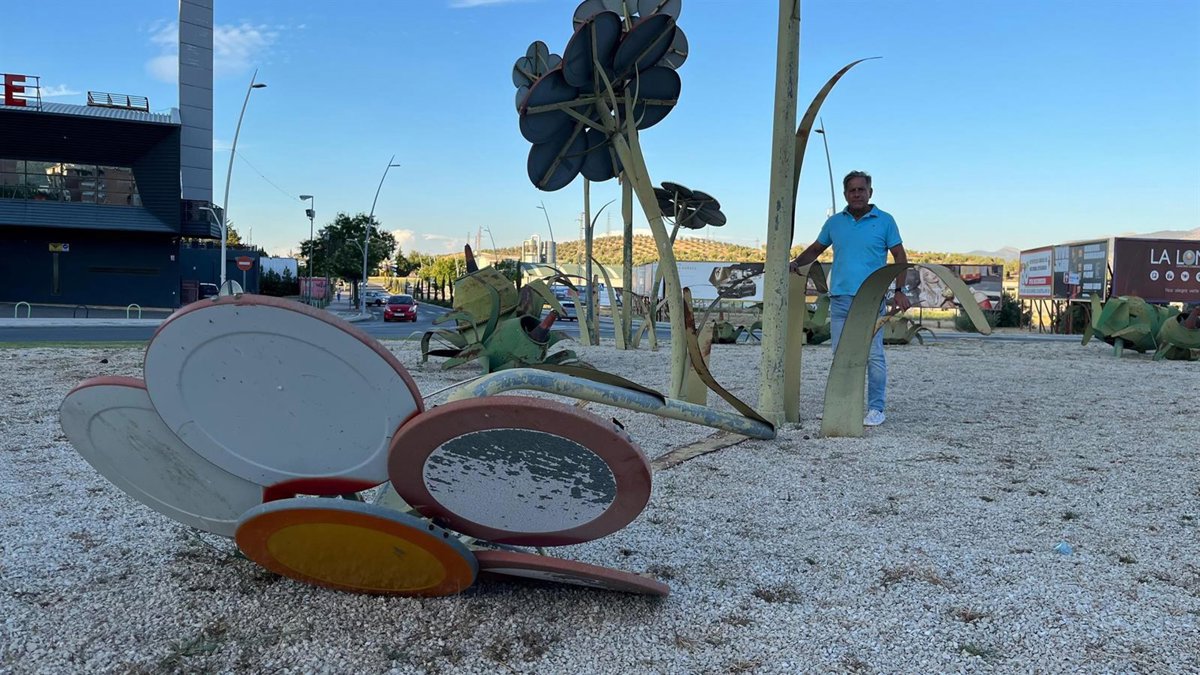 Ha explicado que esta glorieta, obra del artista jiennense José Ríos, se encuentra, "no solo con los jardines descuidados, sino también con farolas tiradas y sin ningún tipo de intervención municipal".