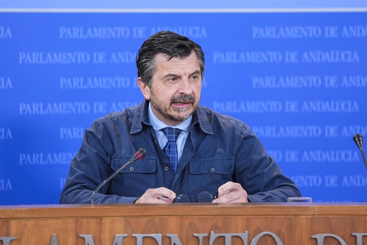 El portavoz del Grupo Parlamentario Popular, Toni Martín, durante la ronda de ruedas de prensa de portavoces de los grupos parlamentarios en el Parlamento de Andalucía, a 30 de abril de 2024 en Sevilla (Andalucía, España). Los portavoces de los grupos p - Joaquin Corchero - Europa Press