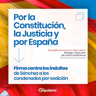 Bonilla ha señalado que el próximo domingo, 13 de junio, desde las 11,00 horas se instalará una mesa en la Plaza de la Constitución para seguir recogiendo firmas "contra este despropósito". Así ha querido animar a toda la ciudadanía jiennense a que se acerque para demostrarle a Pedro Sánchez que en Jaén "estamos a favor de la convivencia pacífica y, sobre todo, del mantenimiento de la Constitución Española".