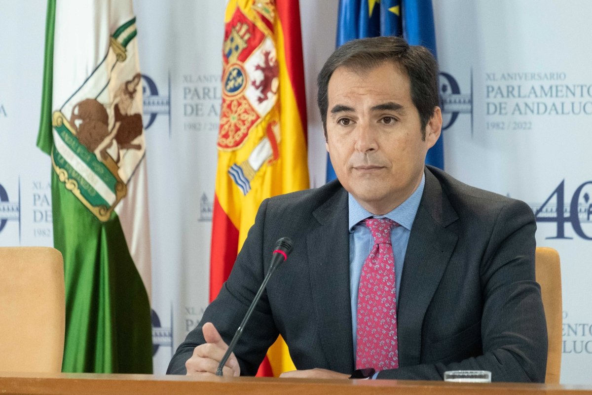 En rueda de prensa, el portavoz del PP-A en el Parlamento andaluz, José Antonio Nieto,
