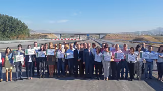 Alcaldes del área metropolitana, portavoces en oposición, diputados y senadores, encabezados por el presidente del PP, Sebastián Pérez, y el secretario general, Santiago Pérez, se han concentrado junto al tramo Calicasas-Atarfe de la Segunda Circunvalación puesto en servicio en julio por el Gobierno central.