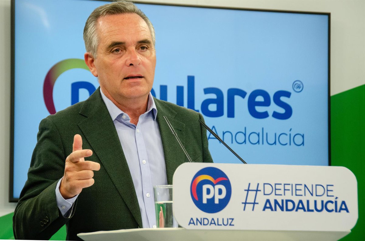 El portavoz de Fomento, Infraestructuras y Ordenación del Territorio del PP en el Parlamento andaluz, Juan Bueno, en rueda de prensa. - ANTONIO DELGADO-ROIG/PP-A
