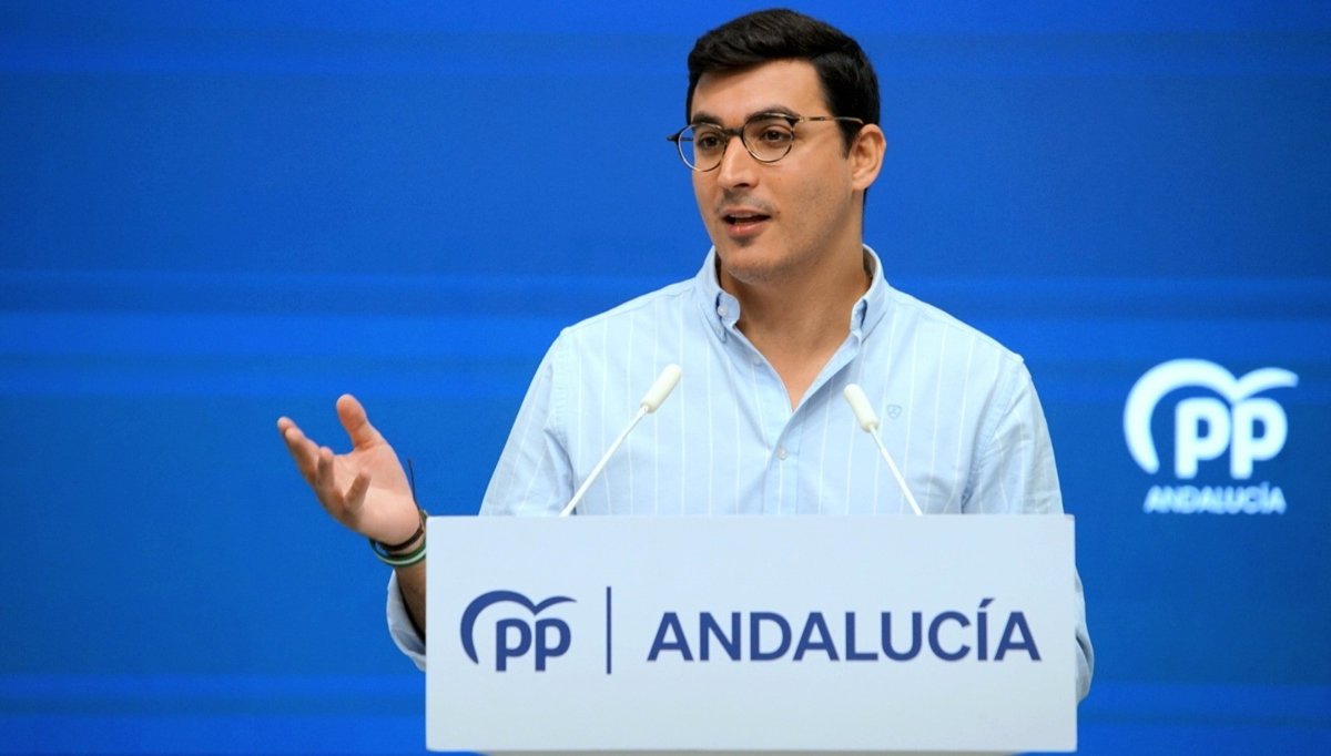 El vicesecretario de Educación, Universidad y Representación Estudiantil del PP-A, José Carlos García, en rueda de prensa. - PP-A