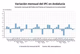 Por provincias, con respecto al mes anterior, los precios han bajado en todas las provincias, Sevilla y Almería lo hicieron por debajo de la media andaluza, con un -0,1 por ciento; en Huelva bajó un 0,2 por ciento, igual que en la comunidad, y los precios bajaron más en Córdoba (-0,5%), Jaén (-0,4%) y en Cádiz, Granada y Málaga (-0,3%).