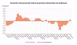 Los precios industriales han bajado en Andalucía en febrero un 0,2% respecto al mes precedente, mientras que, a nivel interanual, la subida ha sido del 2,8%, el mayor repunte a nivel media nacional, según los datos difundidos este jueves por el Instituto Nacional de Estadística (INE).