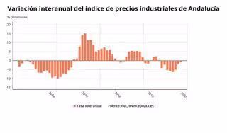 Gráfico con la evolución interanual de los precios industriales de Andalucía, que incluye el último dato, del mes de enero. - EP DATA