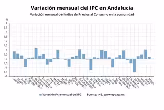 La tasa interanual de Andalucía (0,6%) ha sido superior a las cifras de Islas Baleares (0,4%), Murcia (0,5%), Canarias (0,2%), Castilla La Mancha y Comunidad Valenciana (0,7%) y Melilla (-0,7%) y ha igualado a Ceuta (0,6%). De igual manera, la cifra andaluza ha sido inferior a las registradas en Asturias y Comunidad Valenciana (0,7%); Aragón y Galicia y Extremadura (0,8%); Cataluña, País Vasco y Cantabria(1,0); Madrid, Castilla y León y La Rioja (1,1); Navarra (1,3)