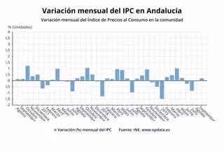La tasa interanual de Andalucía (-0,1%) ha sido igual a la de Murcia (-0,1%), mientras que otras comunidades han experimentado una caída mayor de los precios, como así ha sido en los casos de Ceuta (-0,6%), Extremadura y Asturias (-0,4%), Melilla (-0,3%), Galicia, Castilla la Macha y la Comunidad Valenciana (-0,2%).