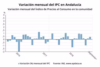 El Índice de Precios de Consumo (IPC) se ha incrementado en Andalucía un 0,4 por ciento durante el pasado mes de septiembre con respecto al mes anterior, de forma que la tasa interanual se ha situado en el 2,2 por ciento, según ha informado este jueves el Instituto Nacional de Estadística (INE), que detalla que el dato acumulado en lo que va de año se cifra en un 0,7 por ciento.