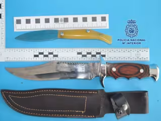 Los policías realizaron a esta persona un registro superficial, localizando entre sus ropas un machete oculto de unos 20 centímetros aproximadamente y una navaja de unos 10 centímetros. También pudieron comprobar que en la puerta del establecimiento donde trabajaba la exmujer, se hallaron unas manchas de un líquido al parecer corrosivo, ya que del mismo emanaba humo y produjo daños en la rueda de un turismo que se encontraba estacionado.
