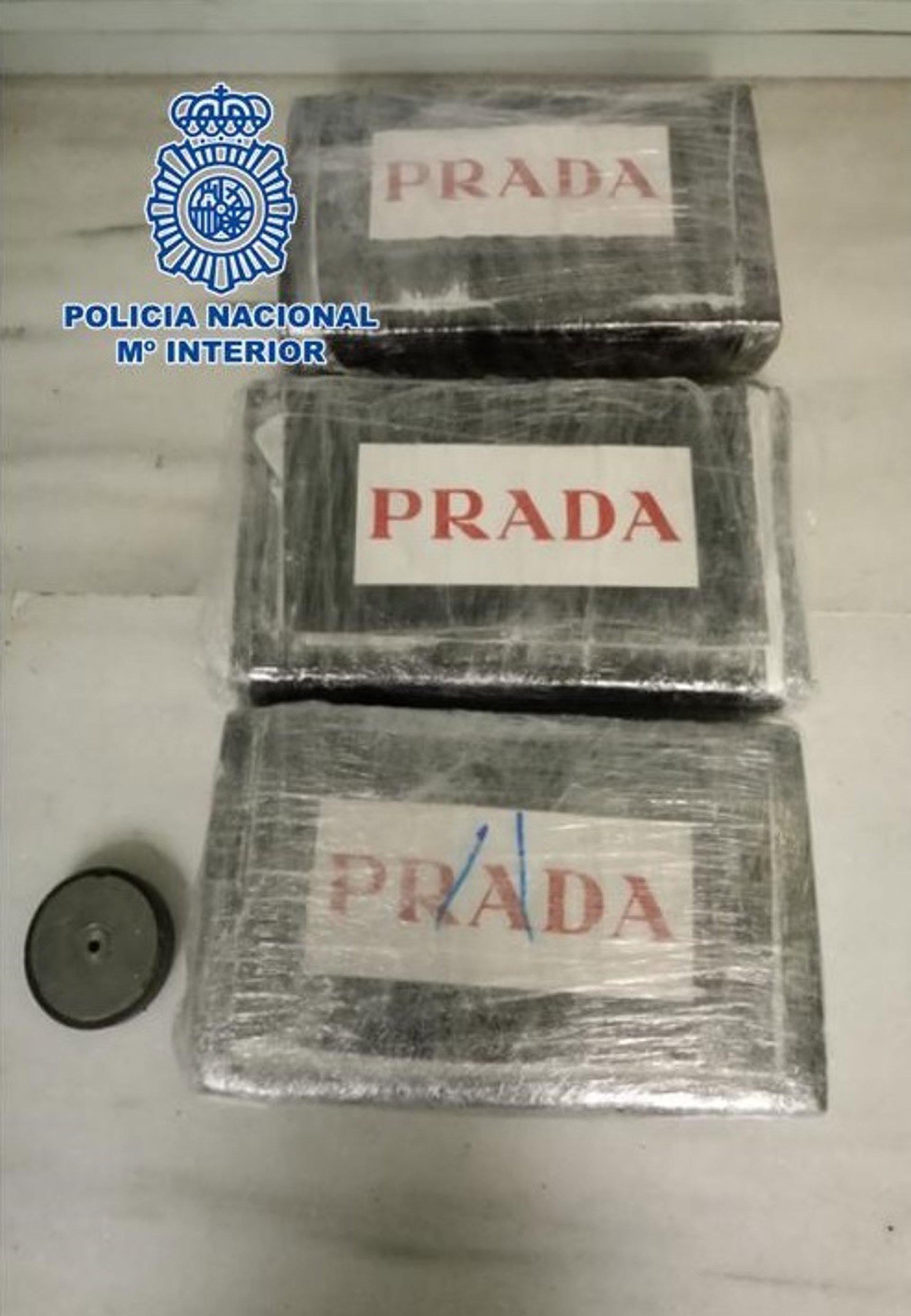 El resultado de la inspección ocular fue el hallazgo de una cavidad oculta preparada bajo una alfombrilla que escondía tres paquetes envueltos en plástico con un contenido de más de 3,3 kilos de una sustancia polvorienta que resultó ser cocaína.