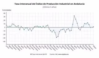El Índice General de Producción Industrial (IPI) en Andalucía ha subido un 1,7% en mayo en comparación con el mismo mes del año anterior, según los datos divulgados este miércoles por el Instituto Nacional de Estadística (INE), con lo que se sitúa 4,8 puntos por debajo de la media nacional, que registra un aumento en la producción del 6,5%.