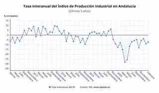Evolución de la tasa interanual de Producción Industrial en Andalucía. - EPDATA