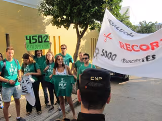 Ello no impidió que finalmente y antes del acto tuviera un breve encuentro con los interinos, los cuales le han recordado que están "en la calle y sin solución a la vista" para acabar con su problemática, a lo que Díaz ha replicado, según los interinos, "que necesita tiempo, que está en ello y que, a pesar de los pesares, la anterior consejera de Educación, Mar Moreno, logró la reincorporación de 850 compañeros".