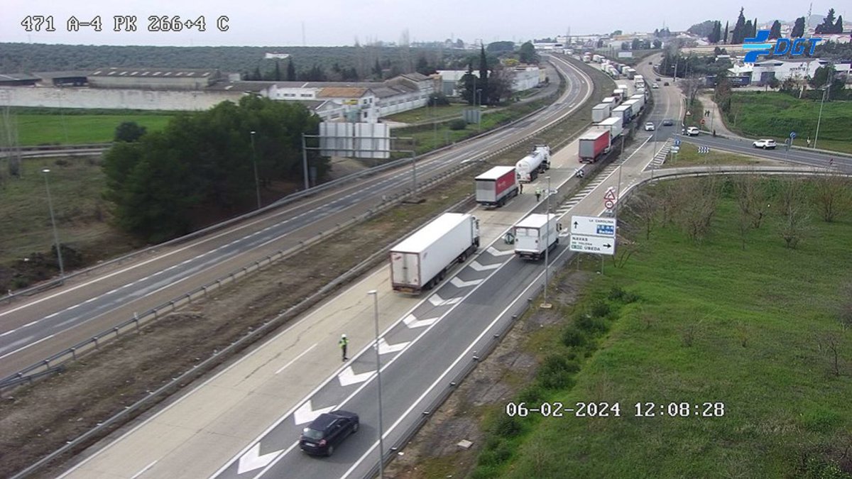 Las protestas de agricultores y ganadores por la situación de crisis en el campo se han extendido a ocho carreteras de la provincia de Jaén, entre ellas las A-4 a su paso por La Carolina (Jaén) donde, según la Dirección General de Tráfico (DGT) se han registrado más de tres kilómetros de retenciones por el corte de esta vía en ambos sentidos.