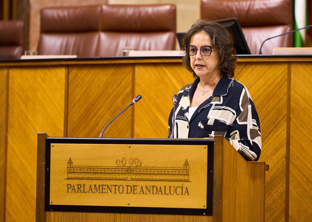 La consejera de Salud, Catalina García, este miércoles en el Pleno del Parlamento en la defensa del proyecto de ley. - JOAQUÍN CORCHERO/PARLAMENTO DE ANDALUCÍA